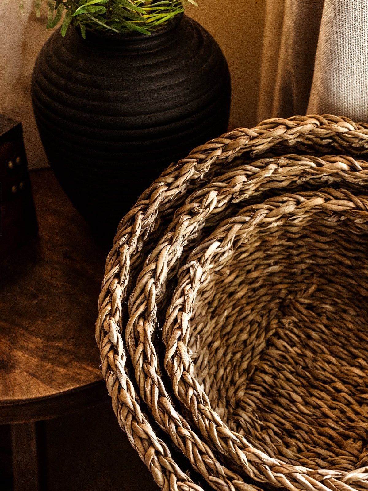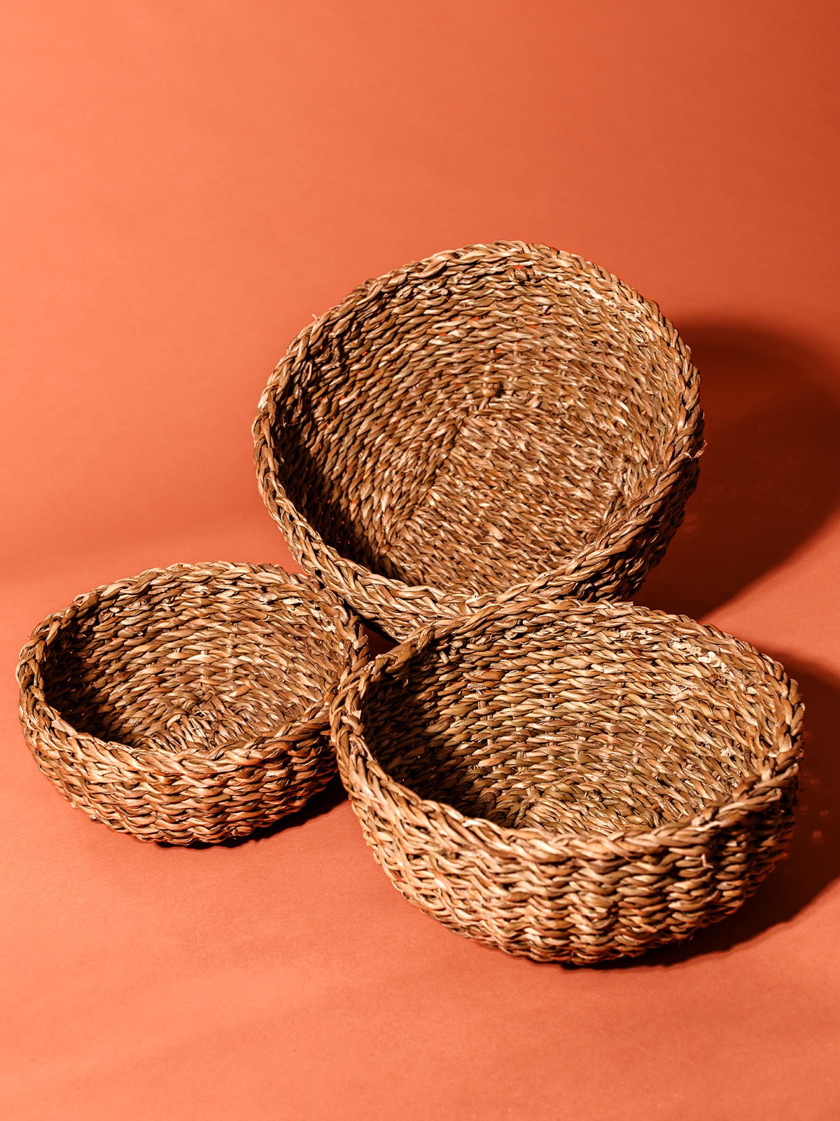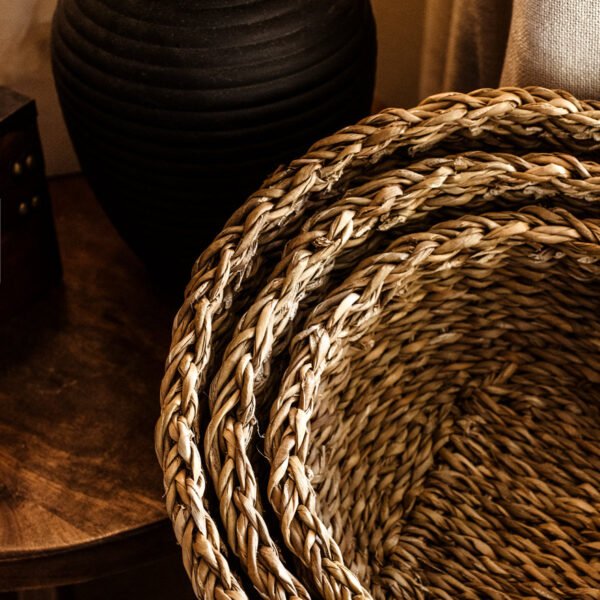 We love the natural beauty and functionality of the Seagrass Basket Set! Handwoven from natural seagrass fibers. this set of three small baskets offers a variety of sizes for storage and a touch of coastal charm. Whether you’re tucking away odds and ends in the bathroom or corralling office supplies on your desk. these sustainably-made baskets bring the seashore to your space.