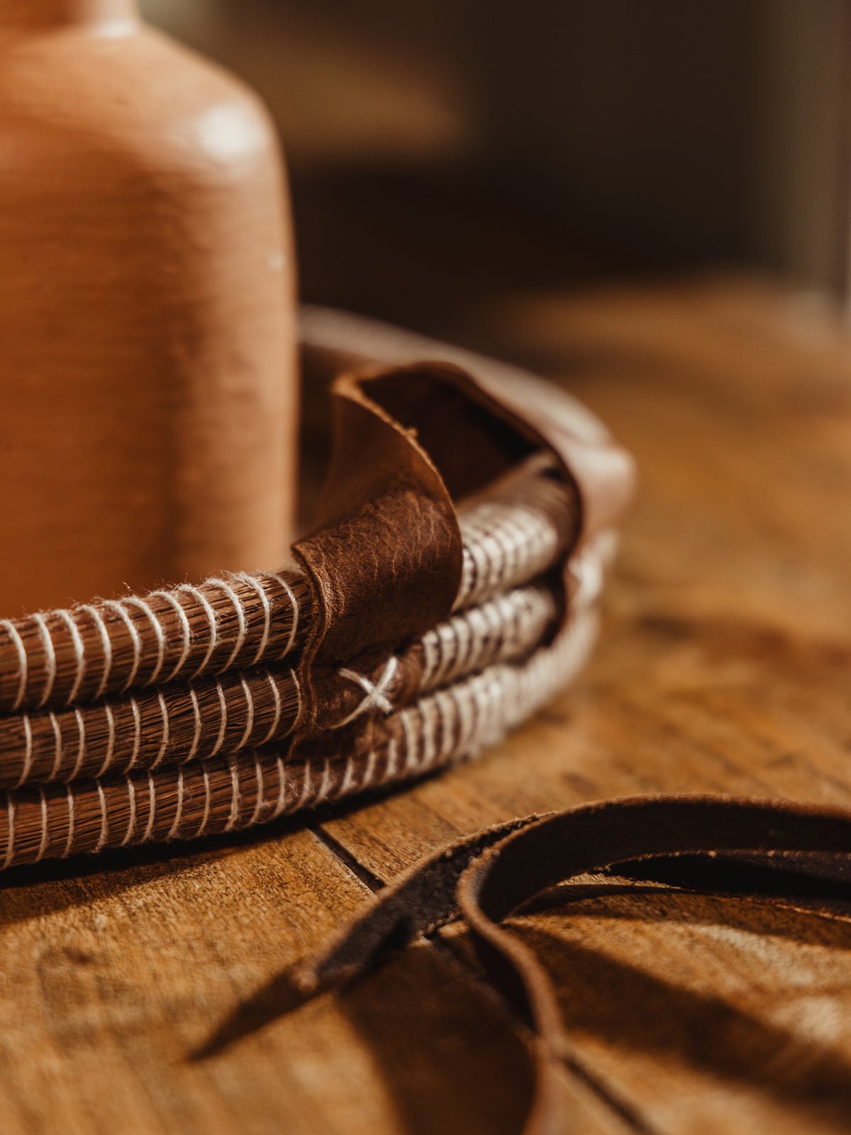 Simplify entertaining with this stunning woven coffee table tray. Handwoven from pine needles. this beautiful tray offers style and functionality. The spacious round design makes it perfect for organizing and displaying coffee table essentials. or doubling as a serving tray for drinks and snacks. The natural beauty of the woven materials adds warmth and texture to your d??cor. and the story behind it will absolutely spark connection in your home.